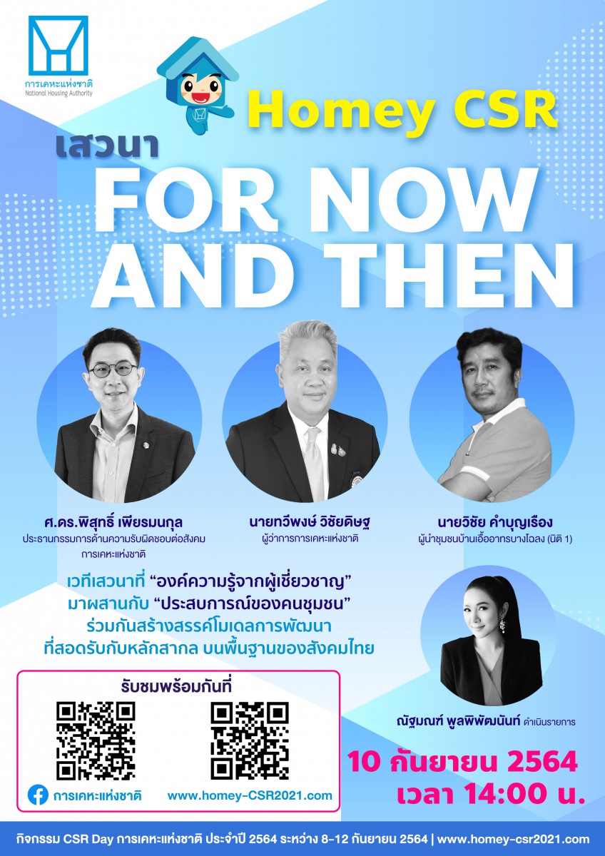 การเคหะแห่งชาติ เชิญชวนร่วมกิจกรรม “CSR Day การเคหะแห่งชาติ 2564” ผ่านช่องทางออนไลน์พร้อมจัดเวที “Homey CSR เสวนา For Now and Then” เดินหน้าผลักดันโครงการชุมชนอัจฉริยะและน่าอยู่อย่างยั่งยืนเพื่อคุณภาพชีวิตที่ดีขึ้น (Smart and Sustainable Community for Better Well-being: SSC)